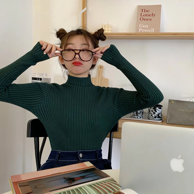Amoura Elegance Women's 2024 Chic Autumn/Winter Turtleneck Sweater – Casual Long Sleeve Knit Jumper Top for Warmth & Comfort